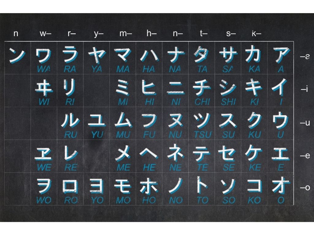 Jika hiragana biasa dipakai untuk menuliskan kosakata bahasa asli, maka katakana dipakai menulis kata-kata serapan dari bahasa asing. Aksara ini juga dipakai dalam penulisan nama negara, tempat asing, dan nama pribadi orang asing. Katakana pun dipakai menulis onomatope dan kata-kata asli ketika hendak menegaskan sesuatu hal. Istilah teknis dan bersifat ilmiah biasanya memakai aksara ini dalam penulisan, seperti nama spesies hewan dan tumbuhan. Dari segi penulisan, huruf-huruf katakana tampil lebih ringkas, mempunyai sudut tajam, dan guratan pendek serta lurus. Sekilas, bentuk katakana lebih sederhana dibandingkan hiragana dan kanji. Ada dua sistem pengurutan katakana yang berlaku, yaitu urutan iroha (berasal dari puisi bahasa Jepang zaman Heian) dan gojūon (lebih umum digunakan). Terdiri dari lima vokal tunggal, 45 konsonan-vokal, dan satu konsonan tunggal, katakana total memiliki 48 karakter.