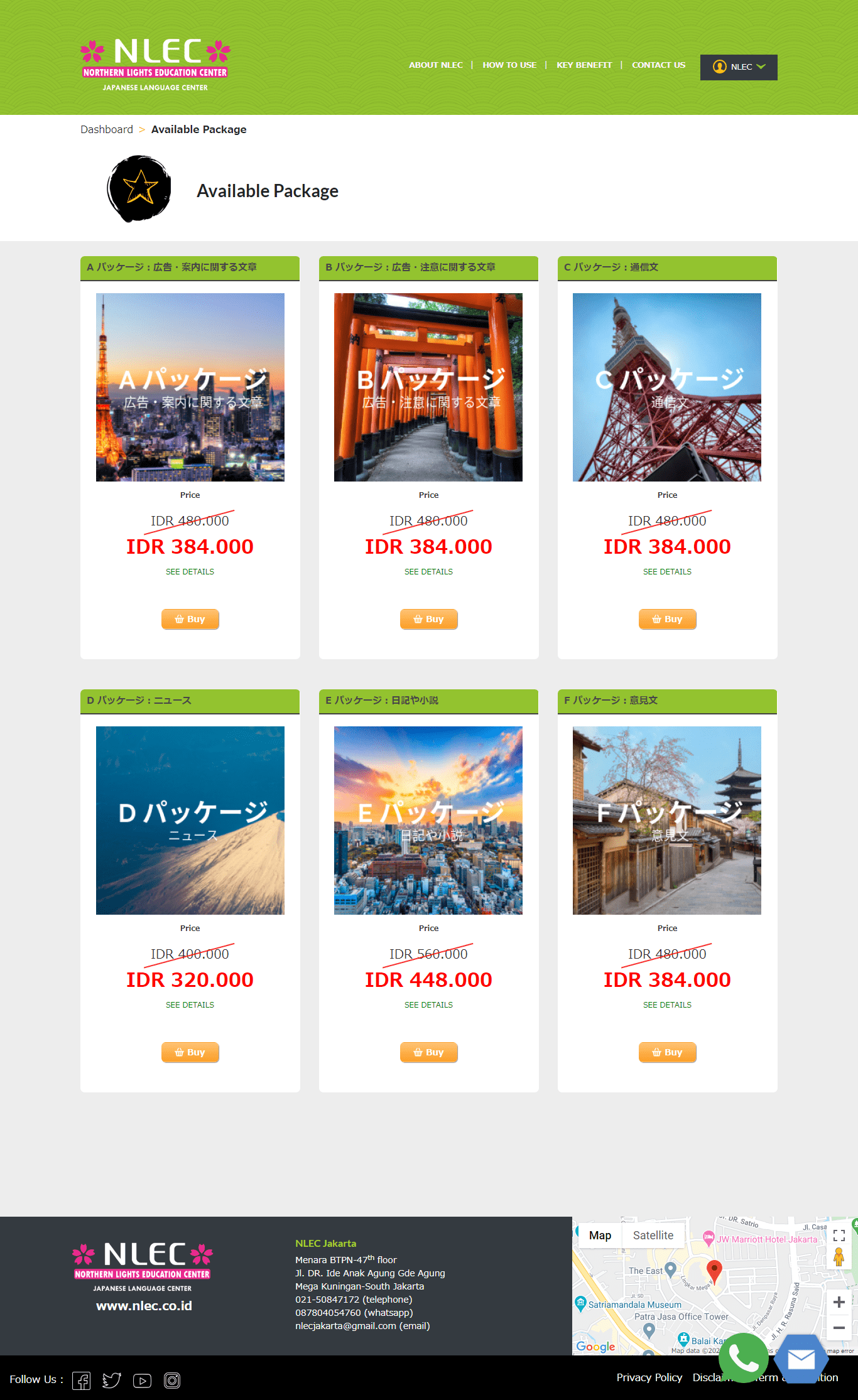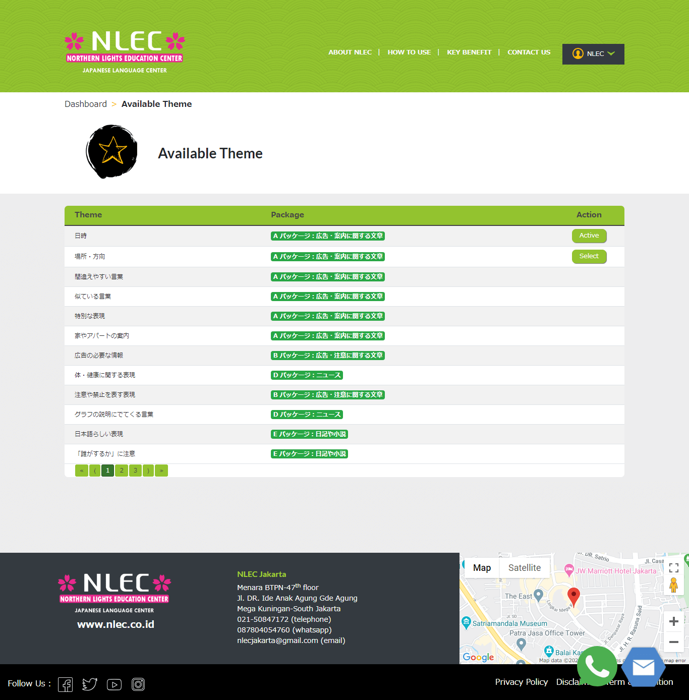 Di dalam menu Available Packet anda bisa memilih paket yang anda mau beli. Dalam satu paket isinya terdapat enam tema pembelajaran yang dapat membantu kamu dalam mempelajari N3.