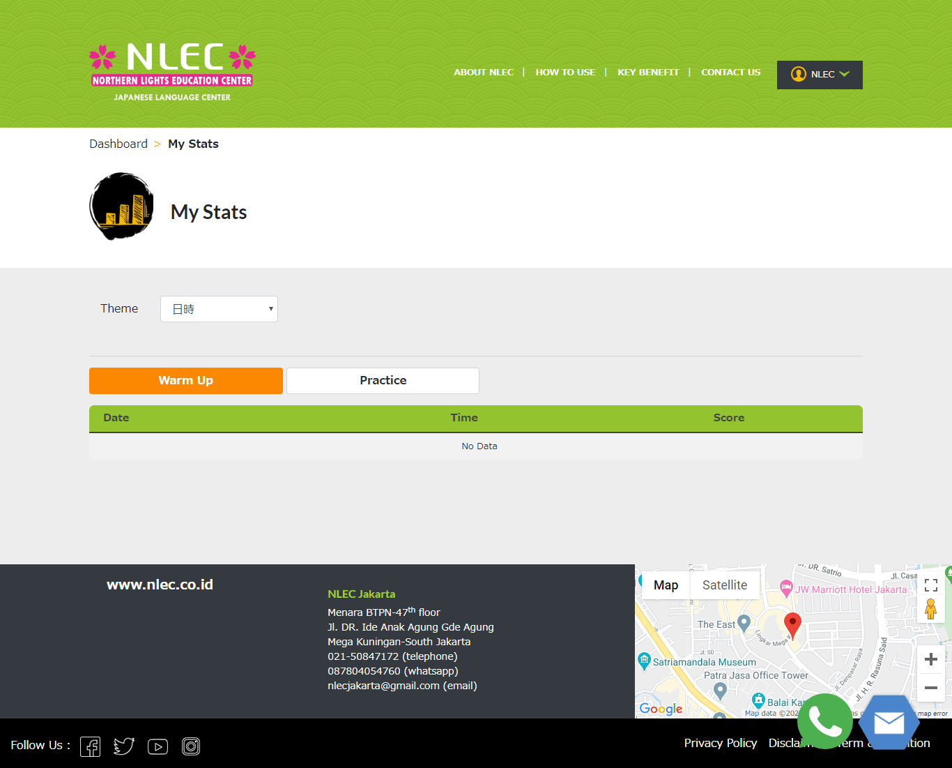Pada halaman ini my stats ini, anda bisa melihat history dari kegiatan anda dalam menggunakan menu Warm Up dan Practice. Di sana anda akan diperlihatkan tanggal berapa anda telah beraktifitas, waktunya berapa lama, dan juga scorenya.