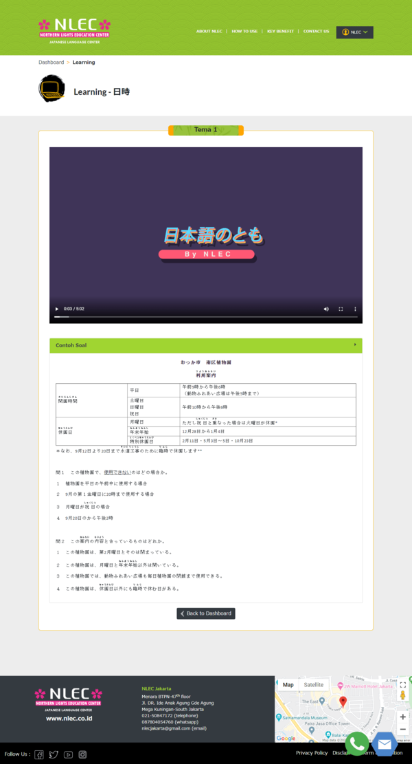 Di bagian ini kamu akan mengaplikasikan ilmu yang sudah dipelajari lewat video dengan mengerjakan soal-soal reading. Kami memasang beberapa soal yang mungkin sedikit diatas standar N3. Biar pas ujian aslinya nanti, kamu udah siap di segala medan. Ohya, kamu juga ngga perlu khawatir, saat jawaban yang kamu pilih salah, akan ada penjelasannya. Jadi kamu ngga perlu spekulasi yaa. Masih belum cukup? Tenang, ada fitur chat yang siap menghubungkan kamu dengan sensei NLEC! Ohya, kami juga menyediakan fitur pengukur waktu, biar kamu tahu perkembangan kecepatan latihan readingnya. Jadi, saat ujian nanti ngga ada acara kelabakan karena waktu abis.